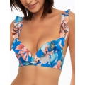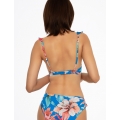 The Bae push-up bikini top is a real holiday hit, gently lifting the bust and emphasizing the cleavage. You will be charmed by the smooth material with colorful flowers on a blue background. This swimsuit is also decorated with a charming ruffle on the straps and along the neckline. • push-up swimsuit top • colorful fabric with a summer pattern - flowers • lovely decorative ruffle