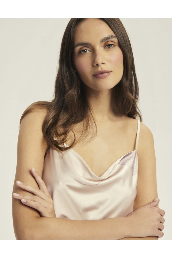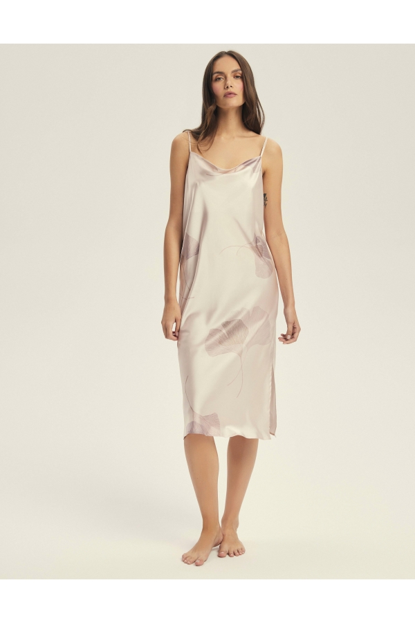 Naktskreklā “Capriccio” katra kustība kļūst par deju, un nakts pārvēršas smalkā ceremonijā. “Capriccio” apbur ar maigu spīdumu un vēja čukstam līdzīgu apdruku – lapas, kas, šķiet, peld pāri audumam. Šauras lencītes, smalks kakla izgriezums un midi garums piešķir izsmalcinātību, nepārspīlējot. Šis naktskrekls ir radīts sievietei, kura svin katru jutekliskas tuvības mirkli ar sevi. Garums līdz ikru vidum ar sānu šķēlumiem Mākslinieciska lapu apdruka Zīdains spīdums un viegla forma Materiāla sastāvs: 95% poliesters, 5% elastāns