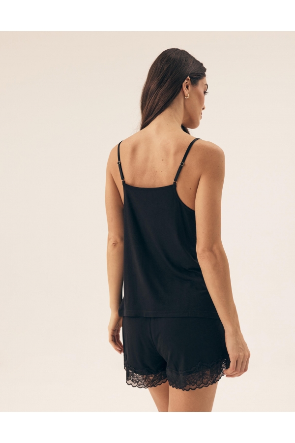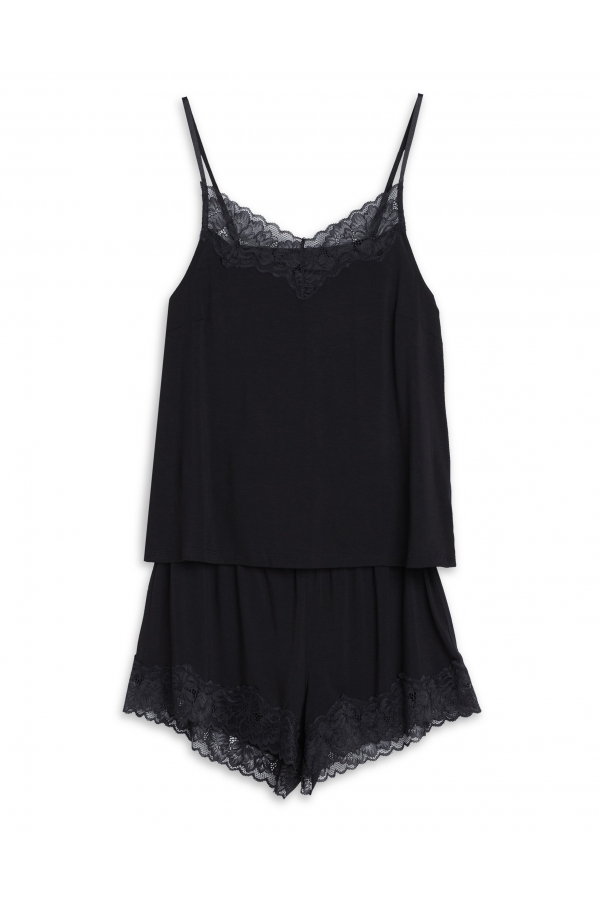 Dziļā grafīta tonī Caris biksītes iegūst modernu, izsmalcinātu izskatu. Caurspīdīgas mežģīnes ar zie..