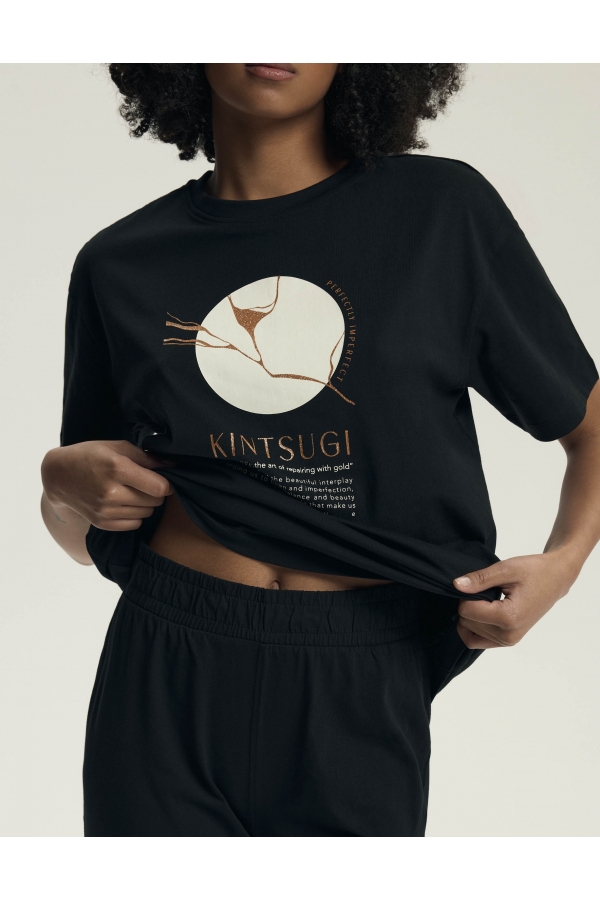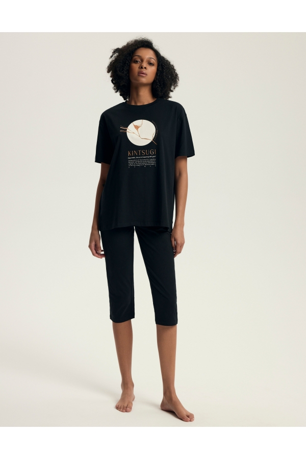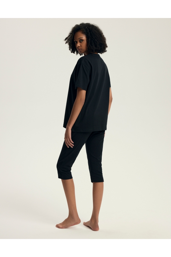 Melnās Charm biksītes spēlējas ar gaismu un ēnām: tonis tonī žakarda raksts veido priekšpusi, savukā..